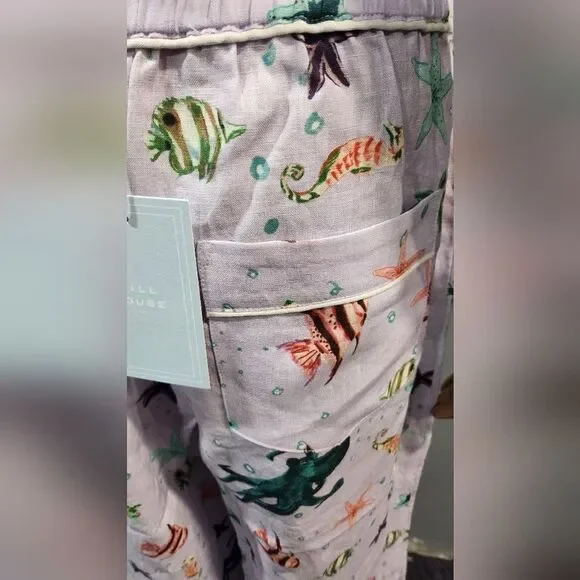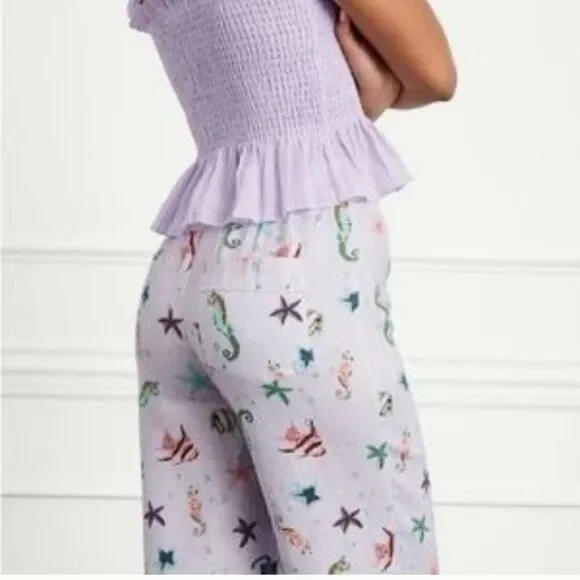 NWT Hill House the Skylar purple sea creatures print linen cropped pants SBrand: Hill House Size: SCondition: New with tags. No flawsColor: Purple, multiCategory: Bottoms, PantsLenght: CroppedFabric: Linen Care: MachineOrigin: ChinaDetails: * all my items are coming from a pet free, smoke free home environment * shop with confidence. top rated sellertags: linen, novelty print, cropped, lagenlook, casual, summer, beach, spring, sustainable, machine washable