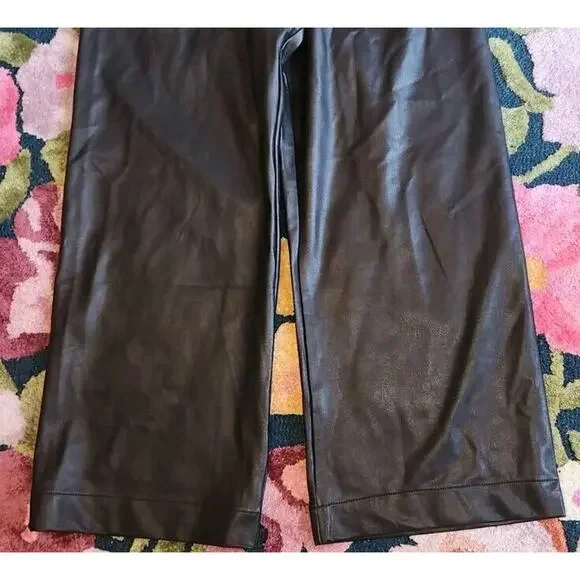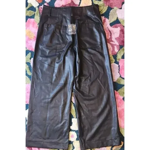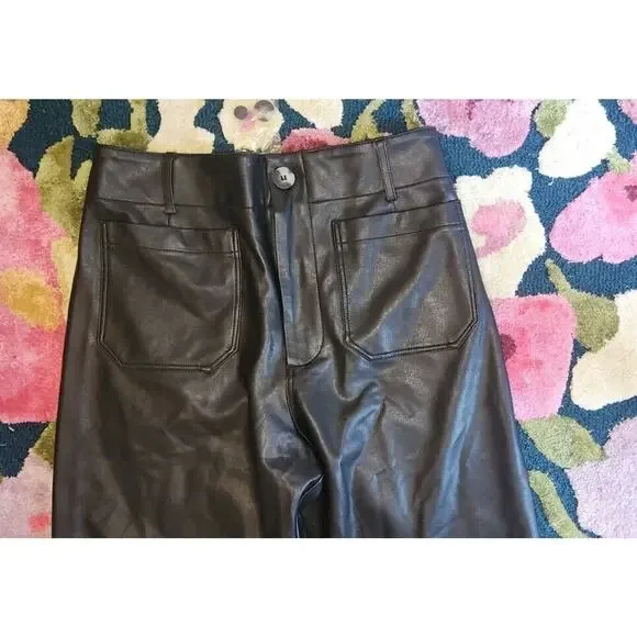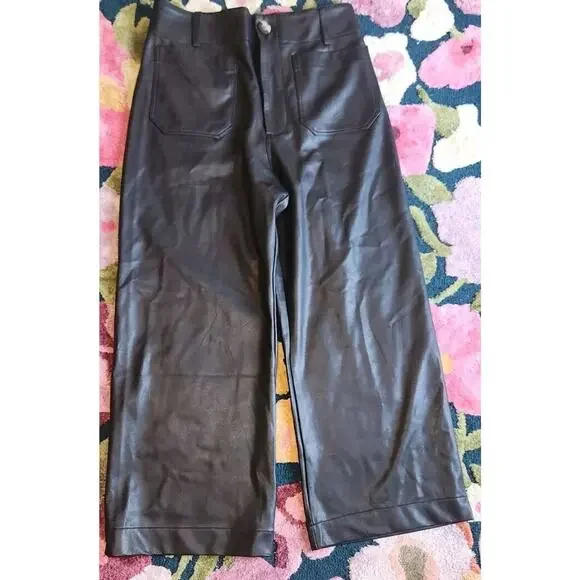 Anthropologie Maeve The Colette Faux Leather Pants Sz 32 Black Wide Leg.
