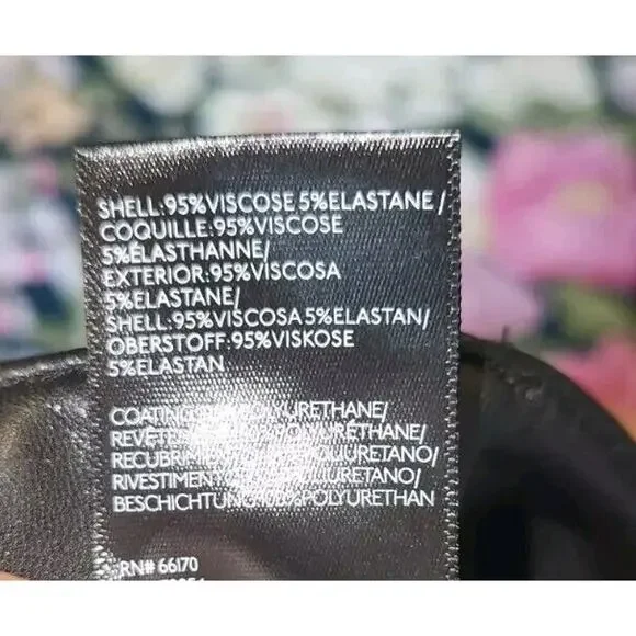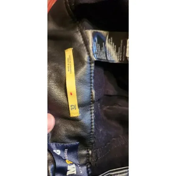 Elevate your fashion game with these stylish Anthropologie Maeve The Colette faux leather pants. The black, wide-legged pants in size 32 feature an array of trendy aspects such as solid pattern, patch pockets, high rise, and flat front. The pants come with different closure options including zip, button, and pull-on, making it convenient for any occasion, be it a party, cocktail, or formal event.Crafted from a blend of viscose, spandex, and polyurethane, the pants are comfortable and durable. The bohemian, city, and 90s themes are reflected in the design, making it a perfect addition to any wardrobe. The pants are from the regular fit size type, and the model is Colette Crop by Anthropologie.