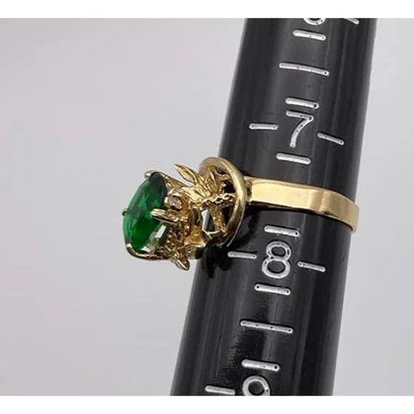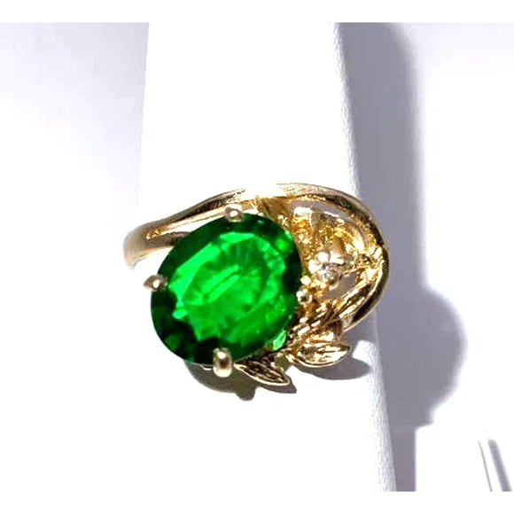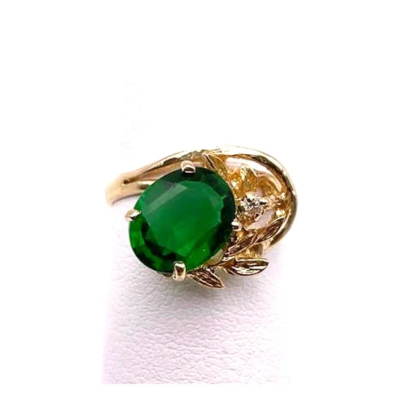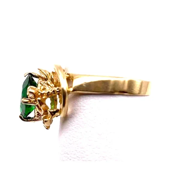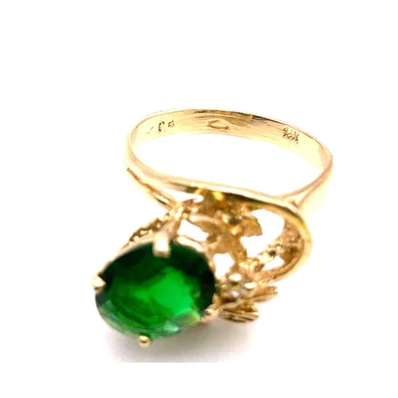 Vintage 10K Yellow Gold Women´s Ring With Large Green StoneSize 7.5