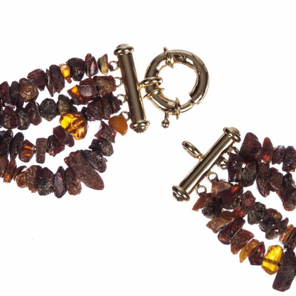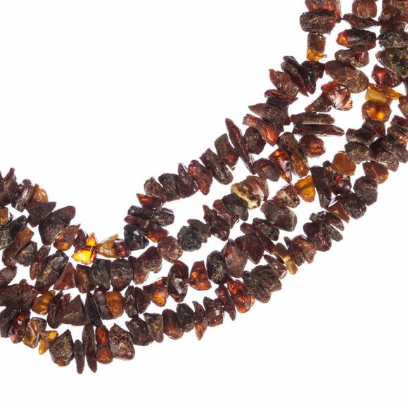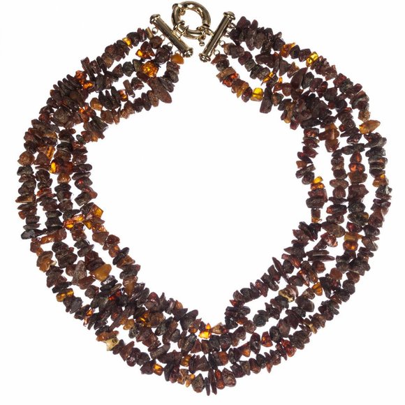 Gorgeous four rows of Baltic amber chip beads with 18 kt gold plated costume clasp….Circa, 2015….Necklace is 16 ½” long….Strands measure, 15”,16”, 17”, and 18”...
