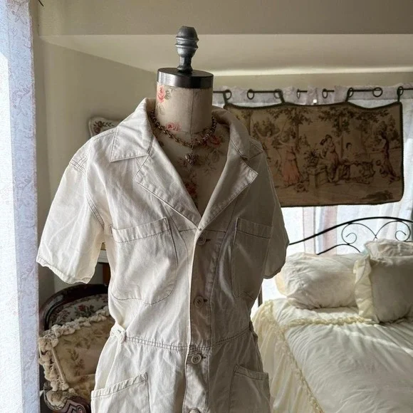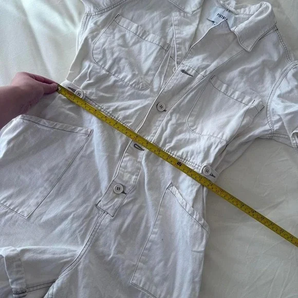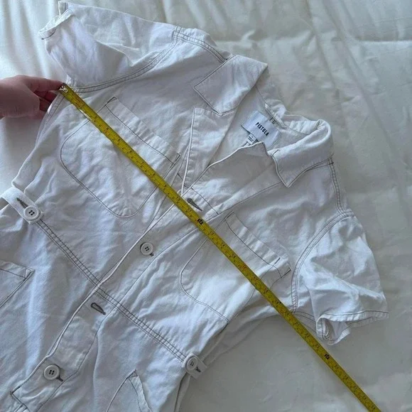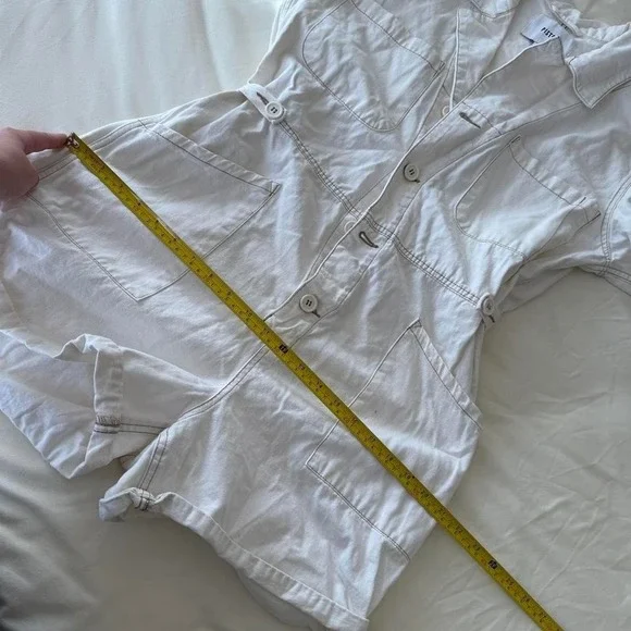White romperCute summer romper buttons down short sleeve waist adjustable so tagged a large could fit down to a medium ( Parker short sleeve romper ) originally $148#cottagecore...