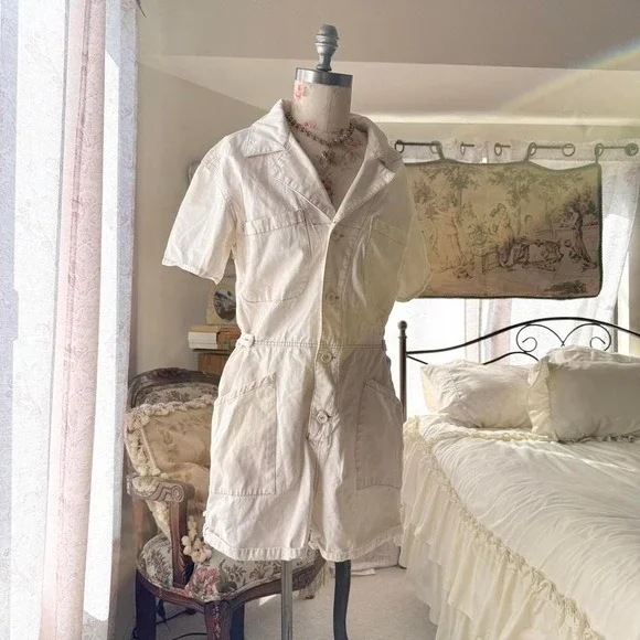 White romperCute summer romper buttons down short sleeve waist adjustable so tagged a large could fit down to a medium ( Parker short sleeve romper ) originally $148#cottagecore #romper #feminine #romantic #summer