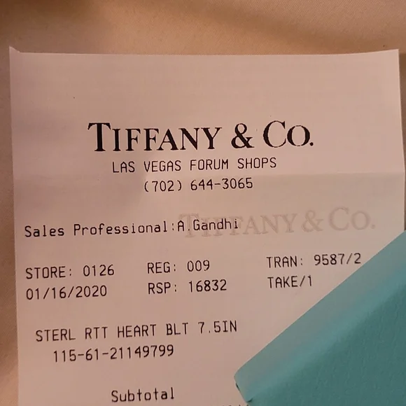 barely worn Tiffany and Co bracelet. original box included.time it was purchased shown.need gone.
