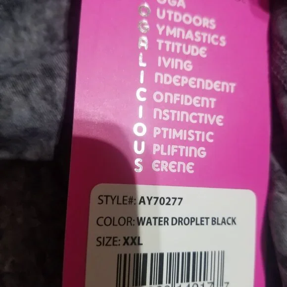 Yogalicious Nude Tech Water Droplet Black Size XXL Brand New with TagsBody: 86% Polyester/ 14% SpandexStyle: AY70277Color: Water Droplet BlackSize XXL (1-96069-14917-7):Waist...