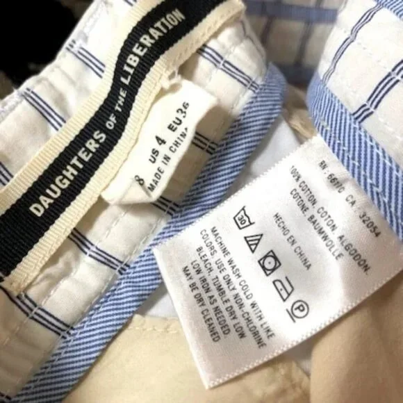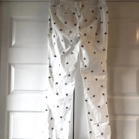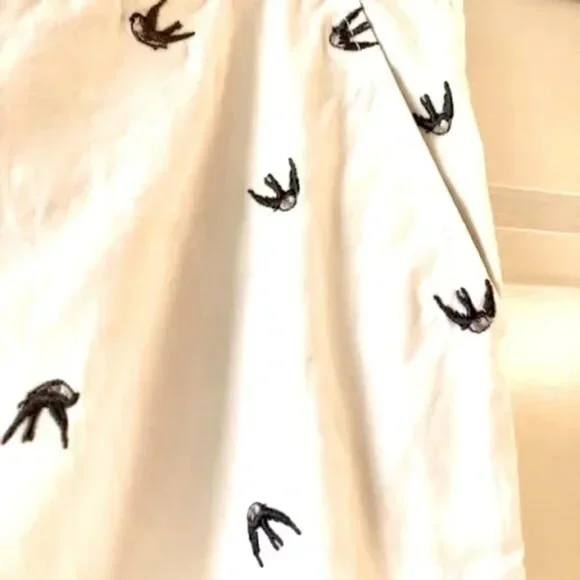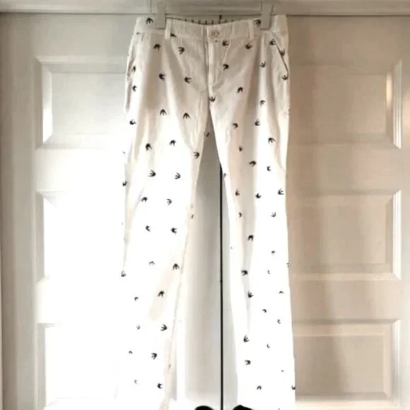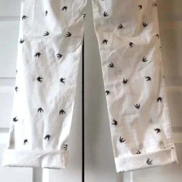 Brand New without tags ANTHROPOLOGIE x Daughters of the LiberationNavy Blue Embroidered Starling Birds adorn these luxuriously soft white cotton classic Chino style Trousers... Wear them straight or with folded cuffs as shown in the photos… MSRP $148SIZE 4 COLOR White with Navy Embroidery Flat frontBelt Loops 2 slant front pockets, 2 flat back pockets 100% Cotton*THANKS for perusing my CLOSET with offerings from my career in Fashion, Interior Design, Home Décor, Antiques, Fine Art & Collectibles, Floral Design, Luxury Designer Apparel, Shoes, Bags, Accessories and more… Offers Welcomed
