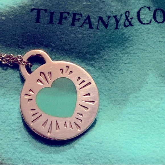 Rare Tiffany & Co round pendant necklace with Tiffany blue heart detail.