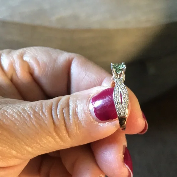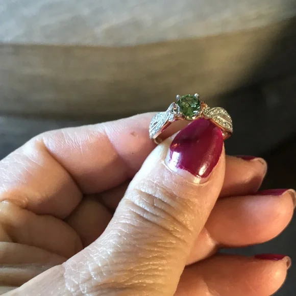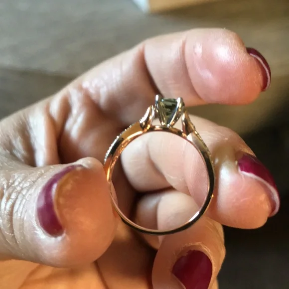 10kt. Rose gold Sz.7Green amethyst with diamonds
