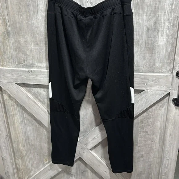 Good condition. Some lint showing that should come off. Elastic seems good in pants. Zippers good with zipper pockets in jacket. Little smudge spot in white border of collar.