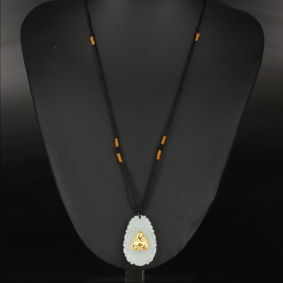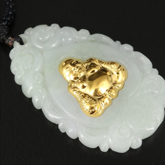 Carved Jadeite and 24k Buddha Pendant Necklace