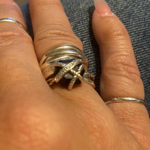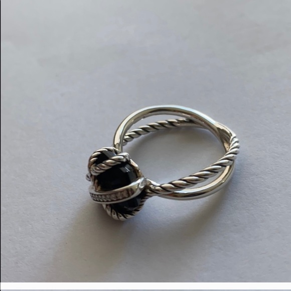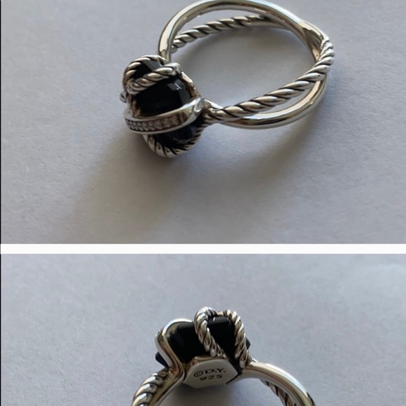 Preloved David Yurman Iconic Black Onyx/Diamond Classic cable ring. Beautiful condition...Sterling Silver Black Onyx 10mmFave Diamonds: 0.28ct t.w.Comes with DY pouchPlease let me know if you have any additional questions!