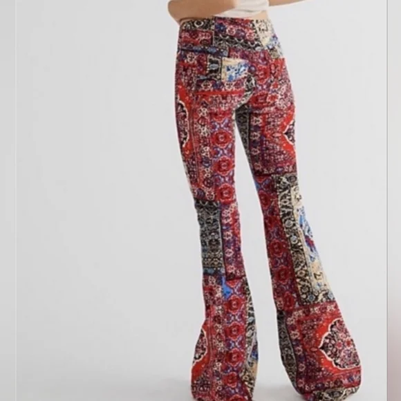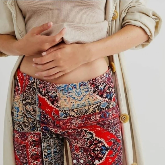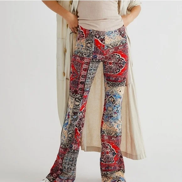 We The Free Red Printed Retro Pull-On Corduroy Flared Pants - Size 24NWOT Waist Measured Flat Appropriately 13.5"Rise Appropriately 7"Inseam Appropriately 33"#1471T2