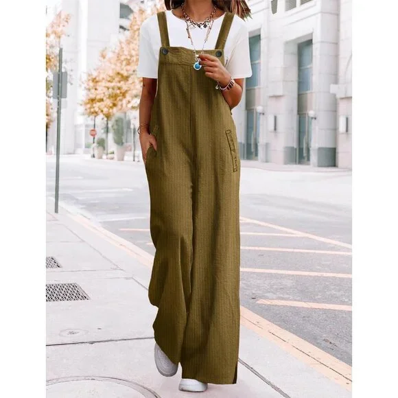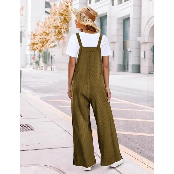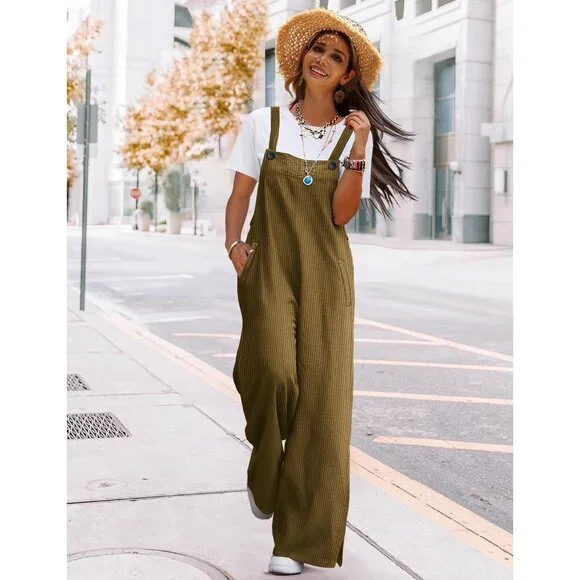 ✅ Bib Jumpsuits for women are made of soft, textured corduroy with vertical stripes that are both stylish and figure flattering. Featuring wrinkle free, durable, and slightly stretchy, they are great choice for lounging all day in during the autumn and winter months.✅ Featuring multiple buttons on the adjustable straps to vary the fit of the bib. The way the torso is cut gives you a waistline while offering relaxed comfort, whether you are curvy or petite. Walking down the street with hand putting in the pockets, side slit wide leg jumpsuits drape well over your shoes.✅ Garment Care: Hand wash or machine wash cold. Hang or lay flat to dry. Low ironing if necessary. Do not bleach.