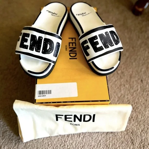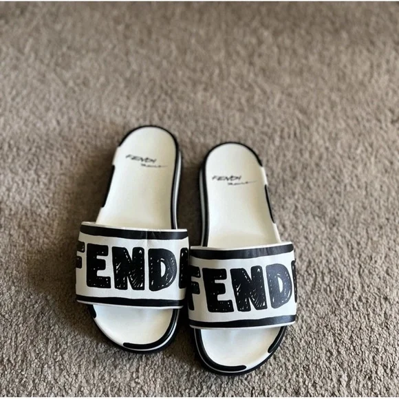 Fendi Black and White Joshua Vibe Slide Sandals size 35