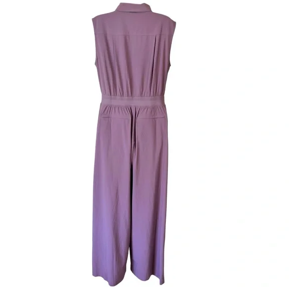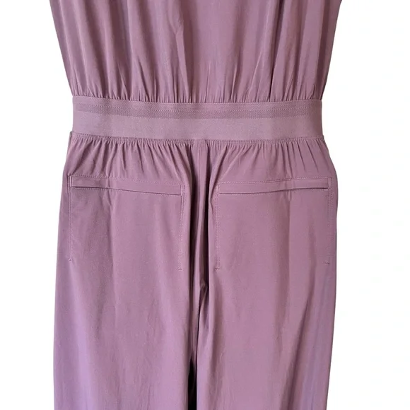 Athleta Brooklyn Heights Wide Leg Jumpsuit in PlumExcellent pre owned condition Product DetailsFOR: Commuting, work, and travelFAVE: Secure zip pockets to store your essentialsA wide, ribbed waistband provides support and comfort#53477986% Recycled Polyester/14% SpandexSize 10