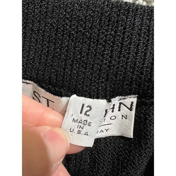 Excellent Used Condition / No snags or stains / VintageSt. John Brand Wide Leg PANTWomen´s Size:12 (I have another pair of these listed in a different style)Actual Waist Measures:31" - (Full elastic waist, will give more)Actual Hip Measures: 44" Rise:15.5" Inseam:32" Leg opening:11.5"Color:BlackSantana Knit (80% wool 20% Rayon)Not itchy!Wrinkle ResistStretch & RecoveryPull-OnDrapePleated FrontWide Band Elastic WaistFront pockets#QuietLuxury #StJohn #Classy #HighEnd #Black #SantanaKnit #WoolBlend #WideLeg #Vintage Non-Smoking HomeSanitized / Steam Cleanedwj24oct24
