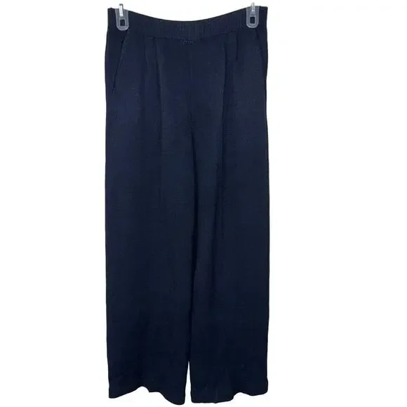 Vintage St. John Pants 12 Wide Leg Pleated Santana Knit Wool Blend Quiet Luxury