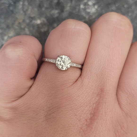 1 ct lab made diamond center stone set in sterling silver. Size 7.5