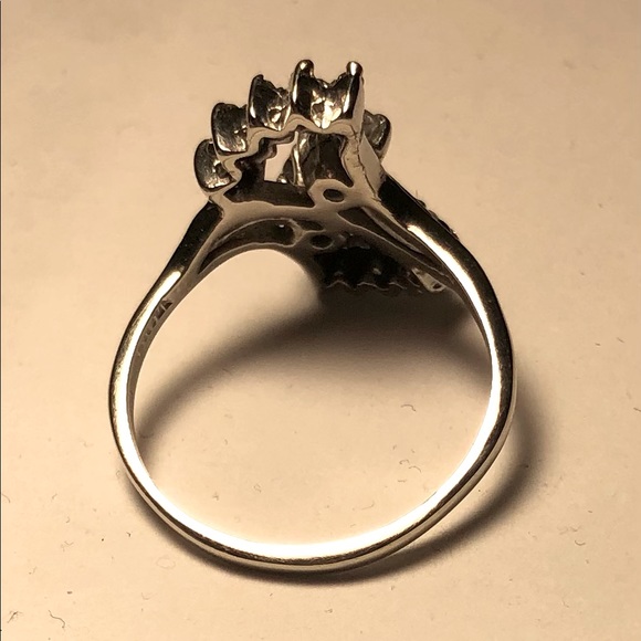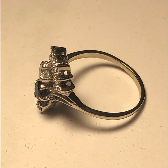 VINTAGE 10K SOLID WHITE GOLD RING W / NATURAL BRILLIANT CUT DIAMOND & SAPPHIRE. THIS IS A BEAUTIFUL RING. RECENTLY SIZED AND CLEANED. SIZE 8