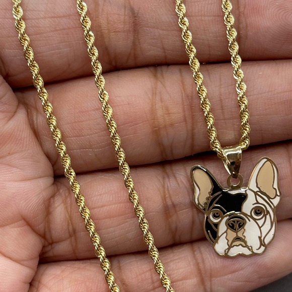 10KT Gold Frenchie Charm Rope Chain