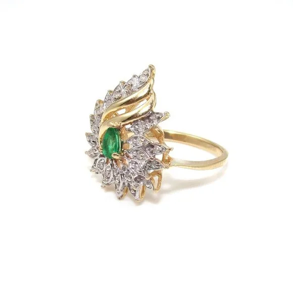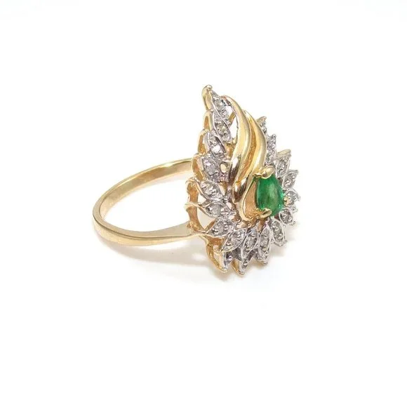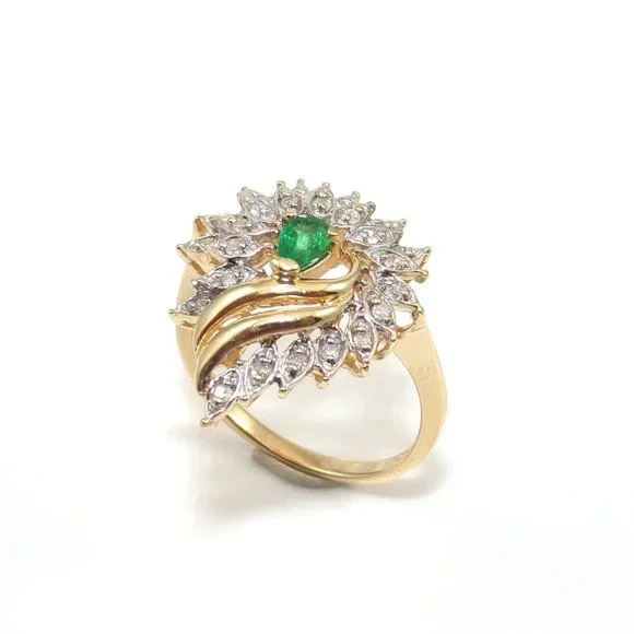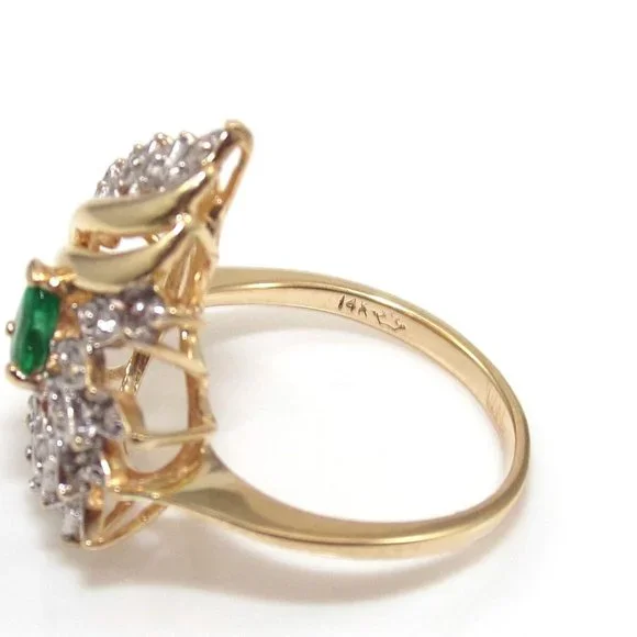 14K Yellow Gold Ring Size 7.25 Natural Emerald Diamond