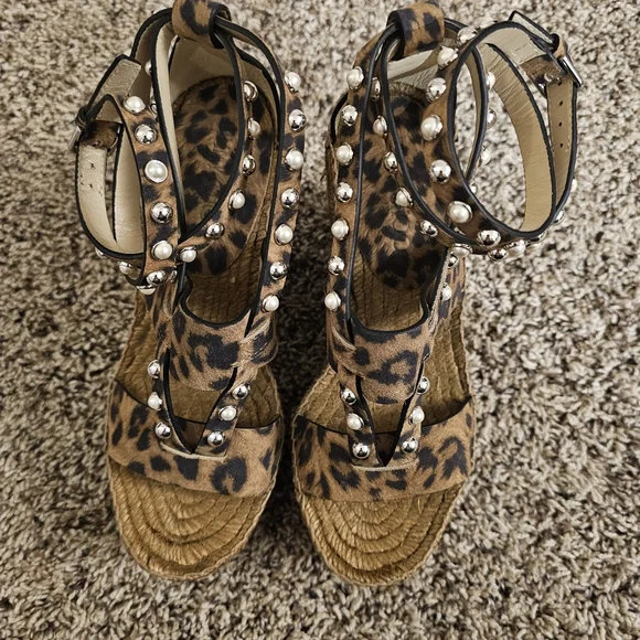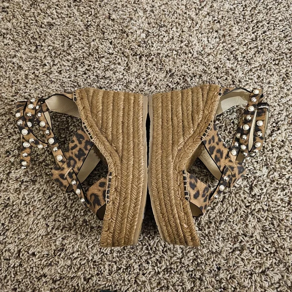 JIMMY CHOO Womens Brown Leopard Print 2" Platform Danica Wedge Shoes 35.5