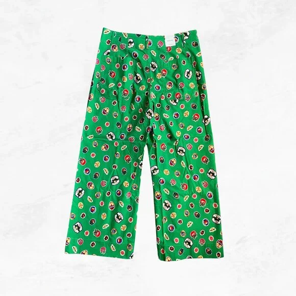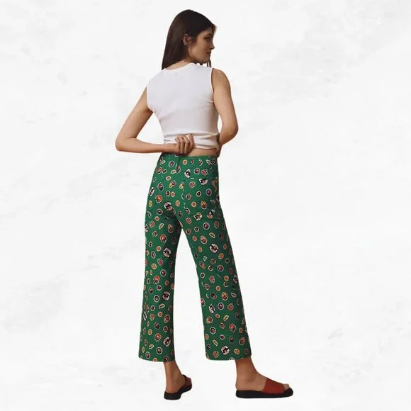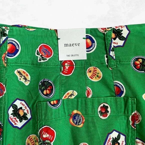 Maeve NWT The Colette Magic Fabric Crop Wide-Leg Pants + Breezy wide-leg silhouette and form-fitting high-riseSize: 33Condition: NWTColor: Green Fruit Label PrintMaterials: Viscose, cotton, elastane