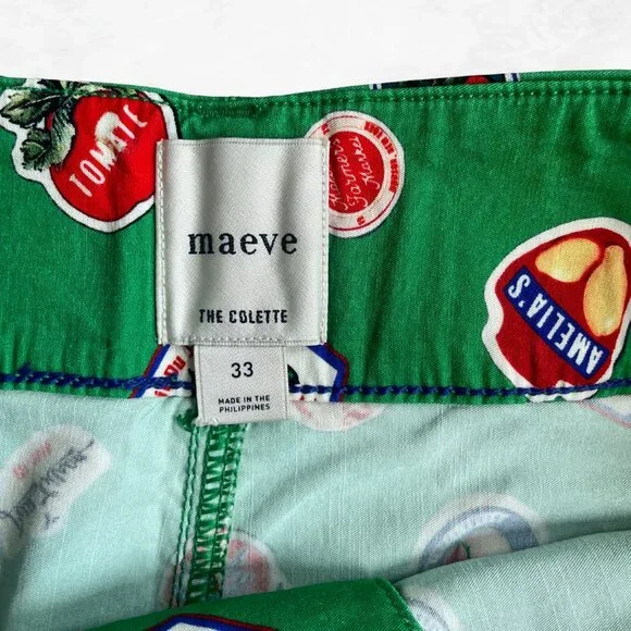 Maeve NWT The Colette Magic Fabric Crop Wide-Leg Pants + Breezy wide-leg silhouette and form-fitting high-riseSize: 33Condition: NWTColor: Green Fruit Label PrintMaterials:...