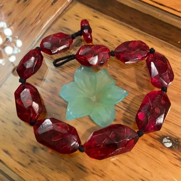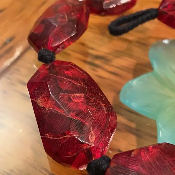 Gerda Lynggaard vintage necklace Beautiful ruby red with blackish undertone stones and black cord a rare piece