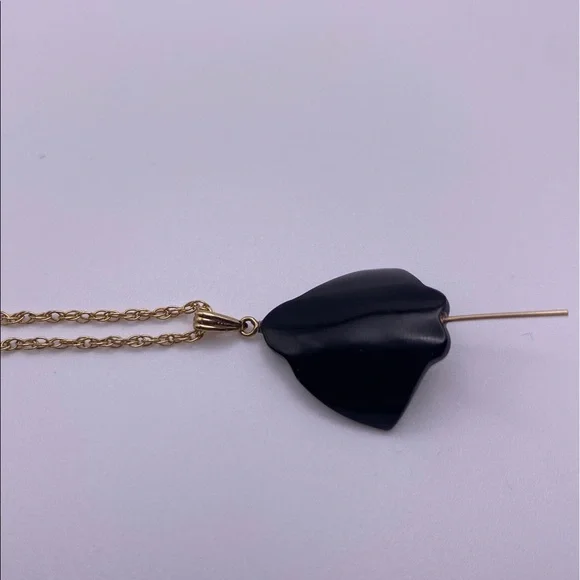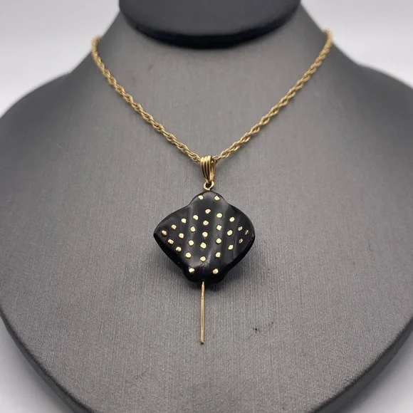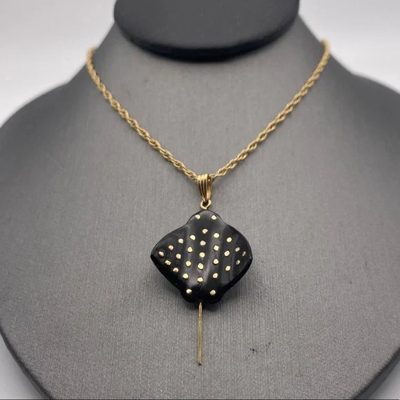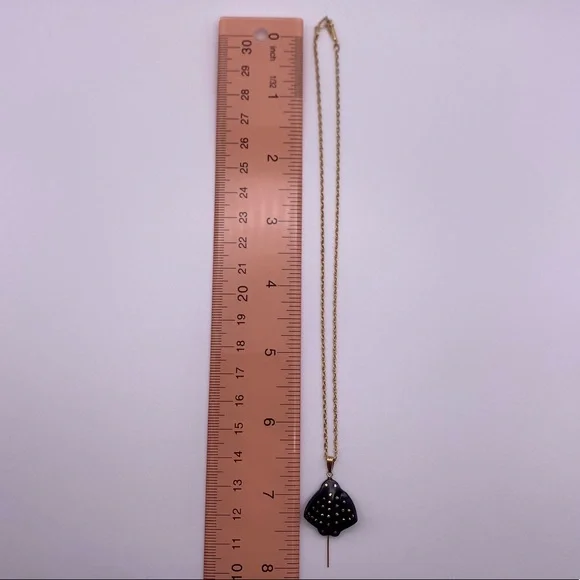 Item #458 14k yellow gold black onyx stingray necklace Chain 14”All jewelry is tested for purity.Comes in a gift box and will be professionally cleaned before shipped(: