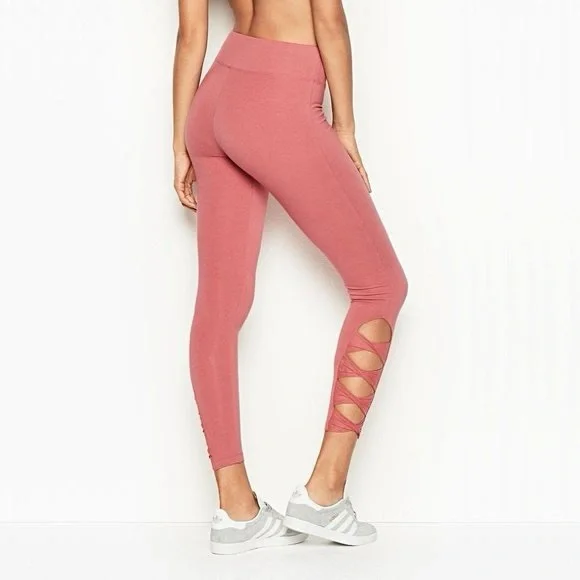 Elevate your workout wardrobe with these stylish leggings from PINK Victoria´s Secret. Crafted in a vibrant pink hue, these leggings feature unique criss-cross cutout details at the ankle, adding a touch of flair to your athletic ensemble. Made from a stretchy, form-fitting material, they ensure comfort and flexibility during any activity. Perfect for both gym sessions and casual wear, these leggings combine functionality with fashion.Victoria´s Secret VSX Twist Mesh Cut-Out Leggings in Rose