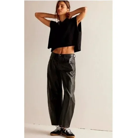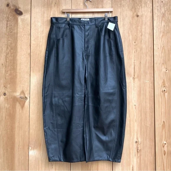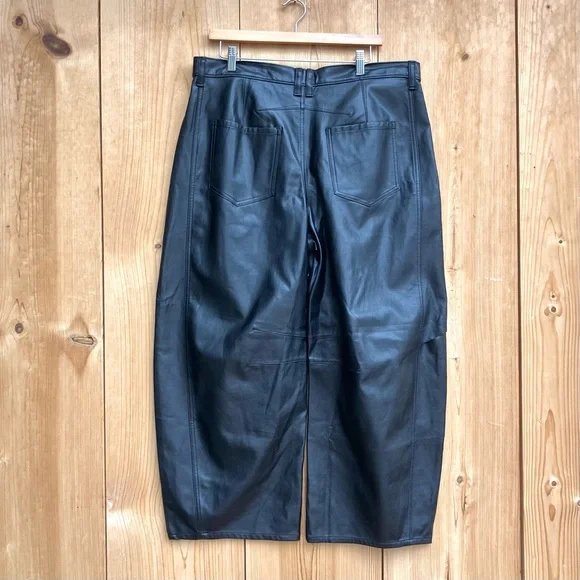 We The Free NWT Black Faux Leather Barrel Pants Sz 32Waist 35”Rise 13”Inseam 25.5”