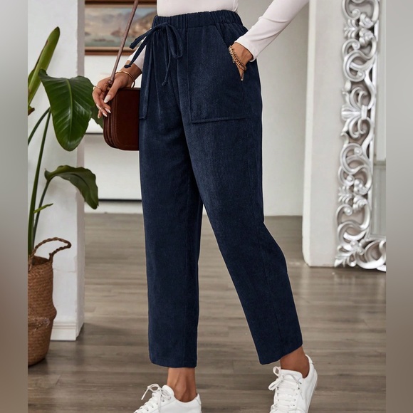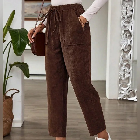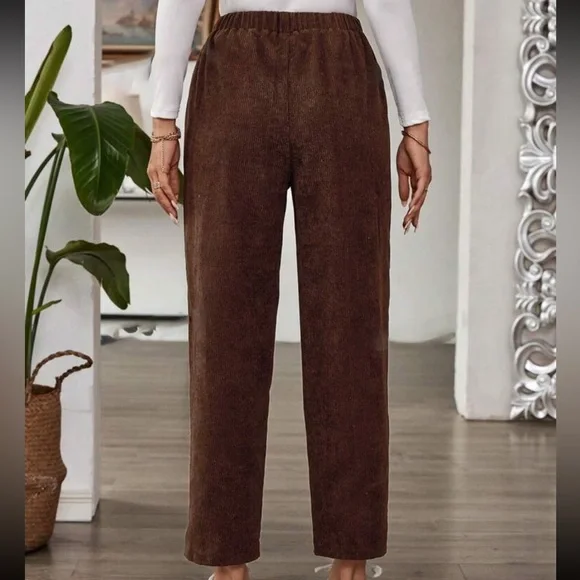 Casual Belted Elastic Straight Leg Corduroy Pants