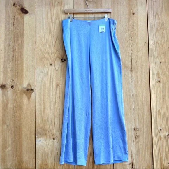 Vince NWT Blue Wide Leg Satin Bias Pants Sz Largeside zipperwaist 34"rise 11.5"length 31"