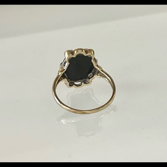 12mm x 10mm onyx in 10k -yellow gold - vintage- as you can see the top of the stone has a little wear- 2.5g