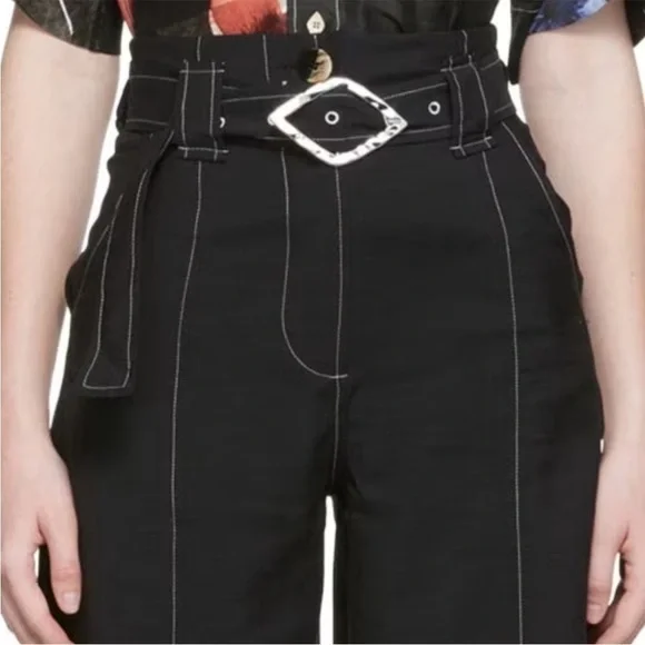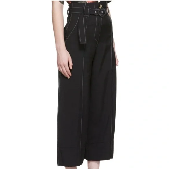 GANNI High Waist Cropped Trousers Belted 40