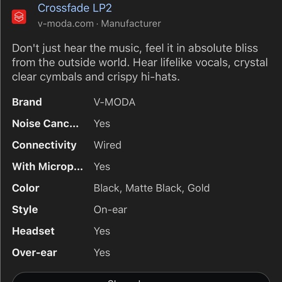 V Moda LP2 DJ Headphones | check the screenshots for more product details. FYI these are cord headphones (not Bluetooth) Used them a dozen times. Comes with headphone case and two...