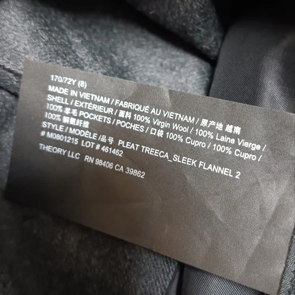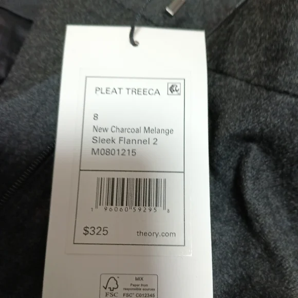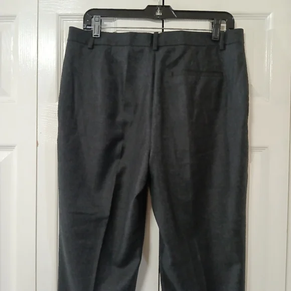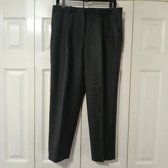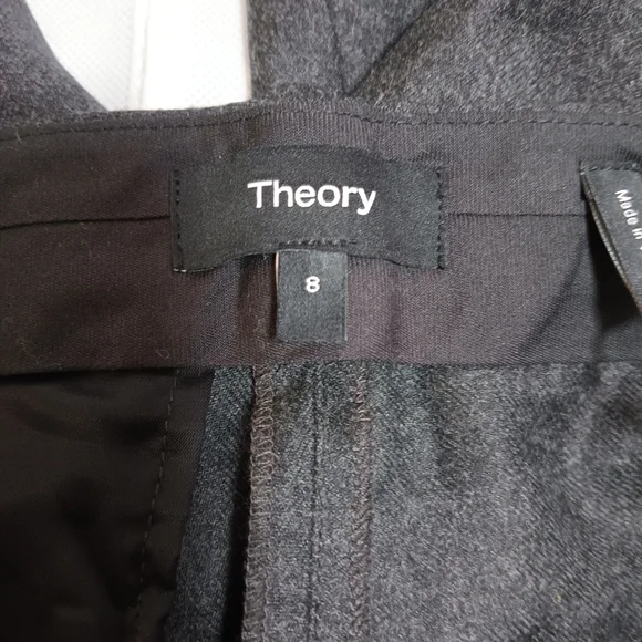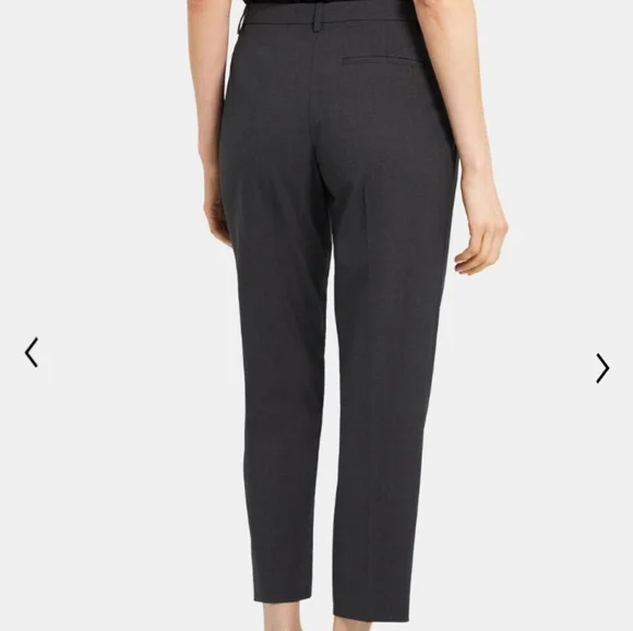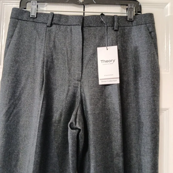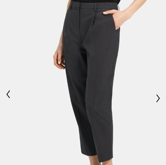 Theory Sleek Flannel 2 Wool Trousers in New Charcoal MelangeSize 8100% Virgin Wool Light-weight non-stretch soft fabricCropped Pleated frontZip, button, and hook and bar...