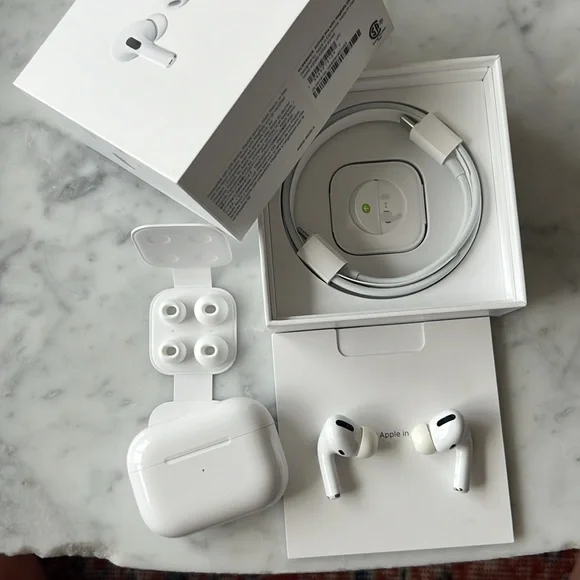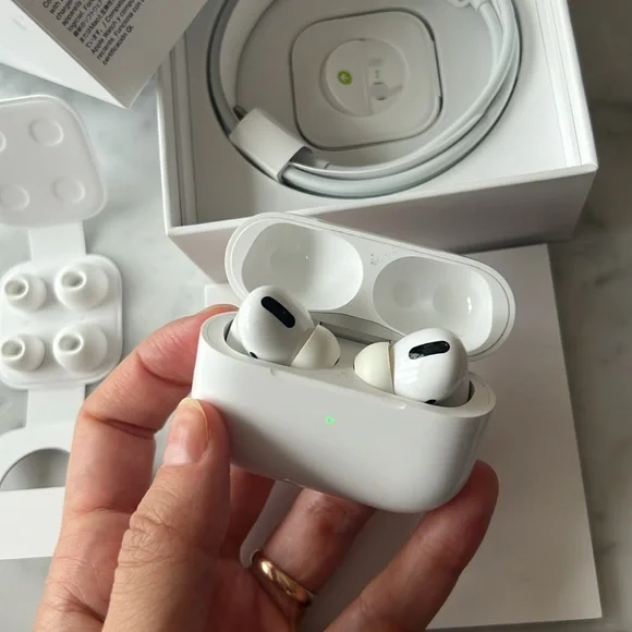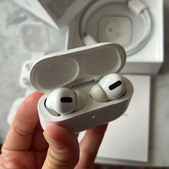 Open box AirPods, comes with brand new unopened charging cord and two size new tips. Everything works properly and functions as expected, and as pictured.
