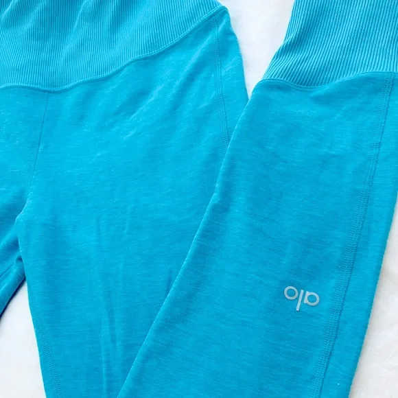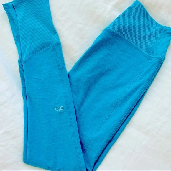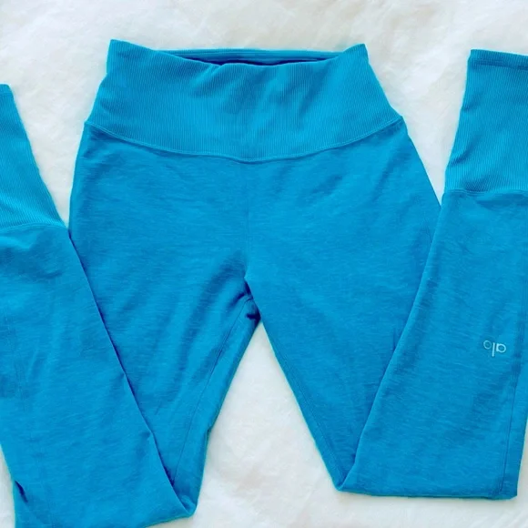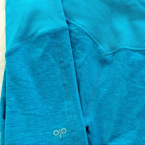 Excellent condition!Teal blue. Buttery ALO soft performance leggings. Back contouring. On trend high waist and cool ribbed contouring details. Designed to uniquely fit every size...