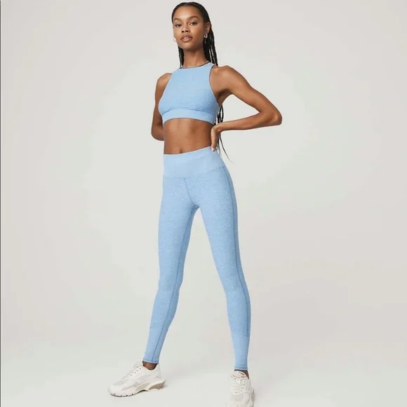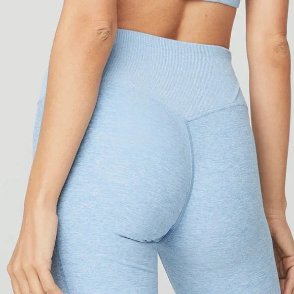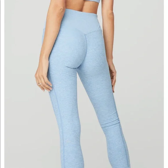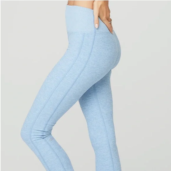 Excellent condition!Teal blue. Buttery ALO soft performance leggings. Back contouring. On trend high waist and cool ribbed contouring details. Designed to uniquely fit every size and shape. Wear tested by alo team for perfect performance fit.