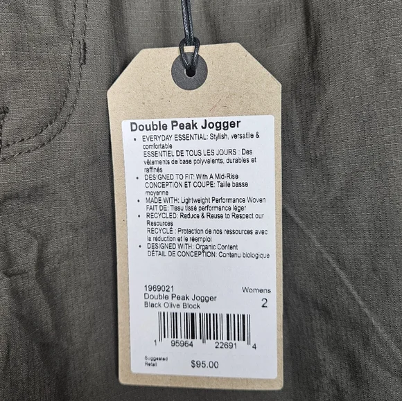 ☆Brand: ☆Style: Double Peak JoggerStyle #1969021Elevate your adventure-ready wardrobe in the chic ® Double Peak Joggers.Standard fit skims the body with a slight contour.Button front closure.Elasticized waistband.Front slash hand pockets.Back zipper pocket.Thigh pocket with welt opening.Mid-rise silhouette.UPF 50+ sun protection.Elastic cuffs.58% organic cotton, 39% recycled polyester, 3% elastane.Machine wash, tumble dry.Imported.☆Color: Black olive block☆Condition: New with tags☆Size: Women´s size 2☆Measurements provided upon request :)☆Ships same to next business day!☆Offers welcome :)