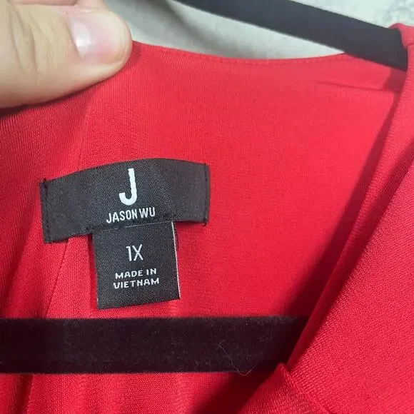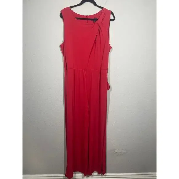 J by Jason Wu Plus Size 1X Wide Leg Jumpsuit Red Side Pocket Sleeveless Stretch