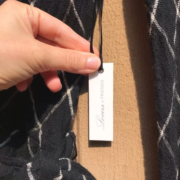 NWT Lovers + Friends “Chateau" V-Neck Romper. A sexy romper in a classic, diamond-pane print with a plunging v-neck, long sleeves, and a matching belt to tie around the waist. Two side pockets, keyhole back with button closure. Full cotton lining. Viscose blend. Hand wash. Size women’s small Dimensions laying flat approximatelyRise, about 12” Inseam, about 2” About 31" from shoulder to hem Imported Model shown is 5´10" (177cm) and wearing a US size Small.