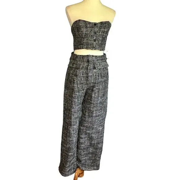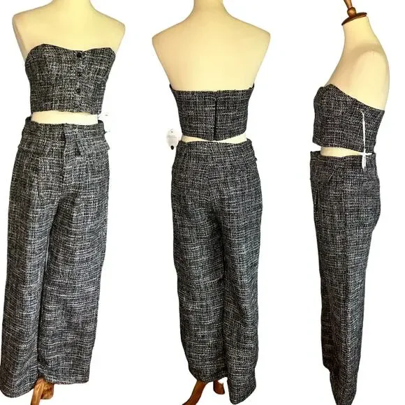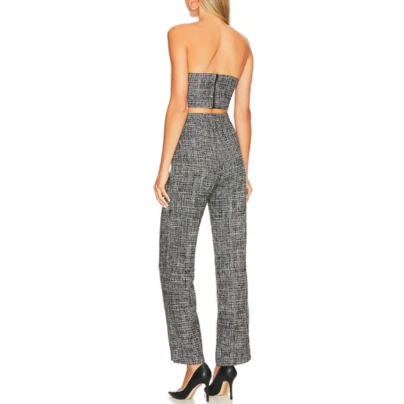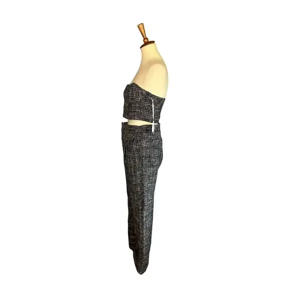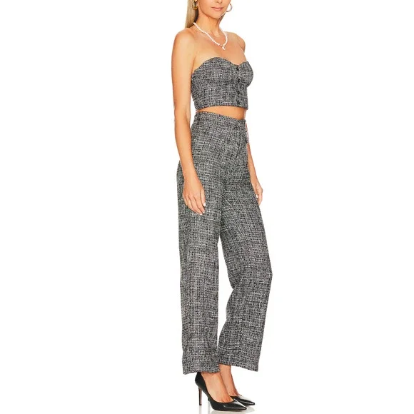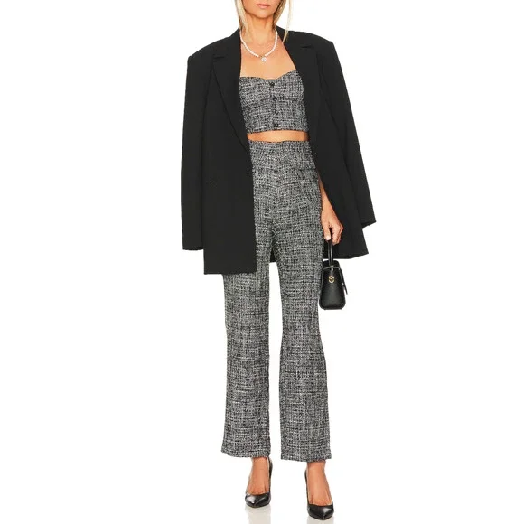 Revolve Black Gray Tweed Pant Set MEDIUM Corset Top Boucle More to Come $118 NEW