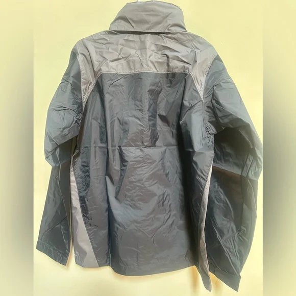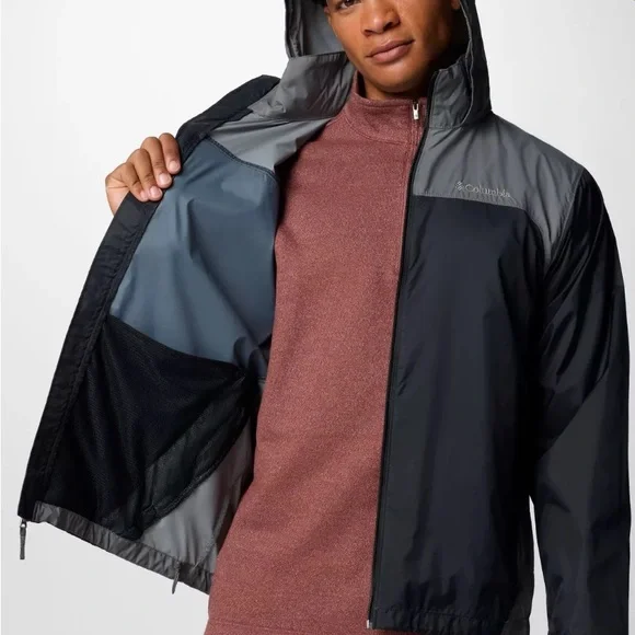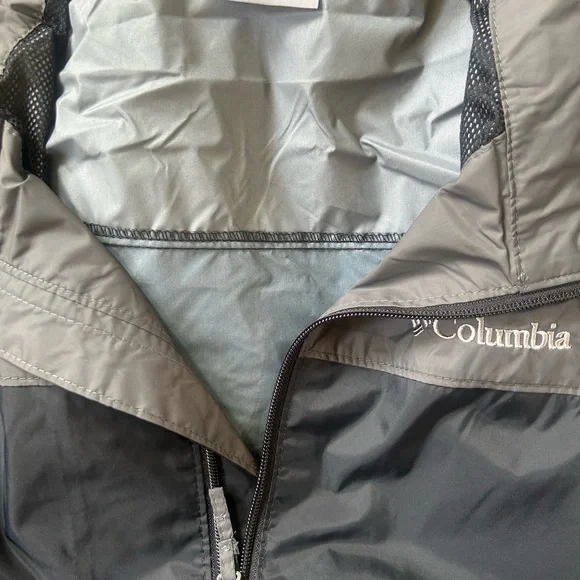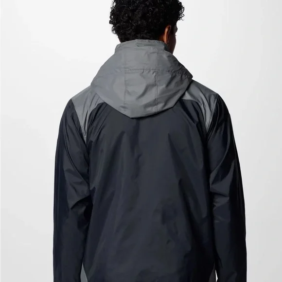 Experience the perfect blend of style and functionality with the Columbia Rain Jacket. This lightweight jacket, crafted in a sleek black and gray color scheme. Made from durable synthetic fabric, it offers a sporty look ideal for outdoor activities. Omni-Shield™ repels moisture and resists stains by preventing liquids from absorbing into fast-drying yarns, so you stay clean and dry in damp, messy conditionsHood stows into collar when you don’t need itZippered hand pockets secures valuablesAdjustable sleeve cuffs and drawcord adjustable hood for a versatile fit. Packable into hand pocket