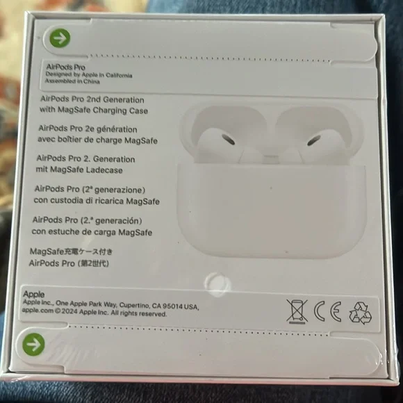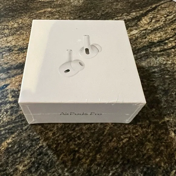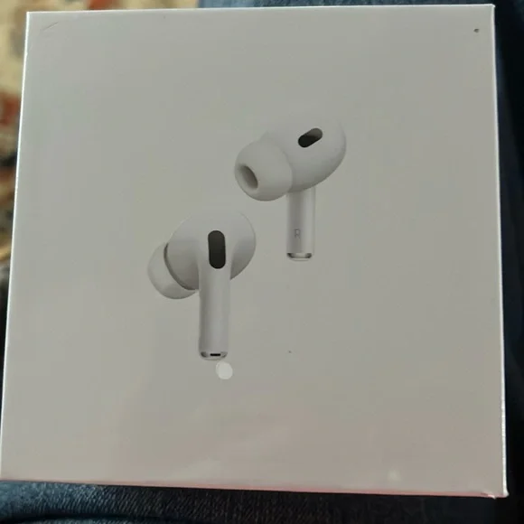 New, never opened AirPods Pro, second generation. Pictures are my granddaughters earbudss. You will get a new pair in a sealed box.charging case, extra earbuds