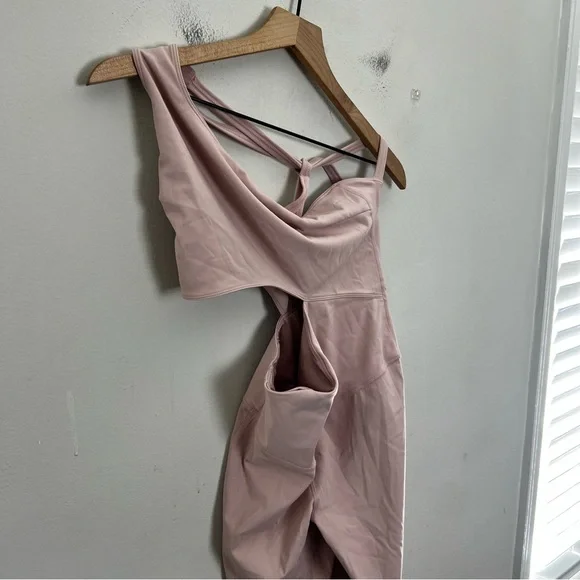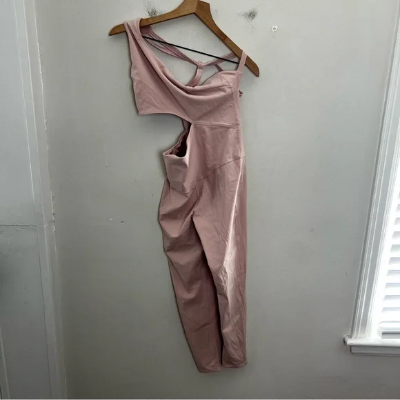 Go right to the top of the class in this workout-ready onesie featured in a sleek and sultry design with a one-shoulder strap and bold cutout details.Self: 68% nylon, 32% elastane Lining 1: 81% nylon, 19% elastane Lining 2: 95% polyester, 5% elastane Machine wash Pull-on styling One shoulder styling with strappy back design Bodice cut-out Reflective logo detail at backVery good used condition.