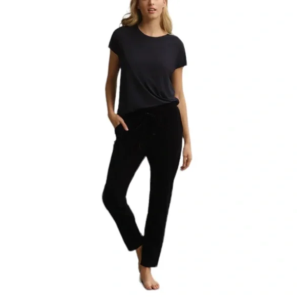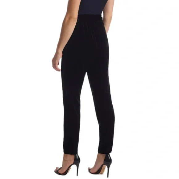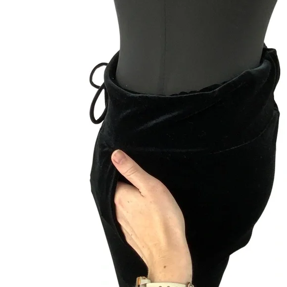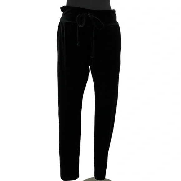 Fabulous black velvet joggers with functional drawstring and pockets. Look fabulous while being comfy with fall and winter! Waist: 14.5”Rise: 14”Inseam: 30”
