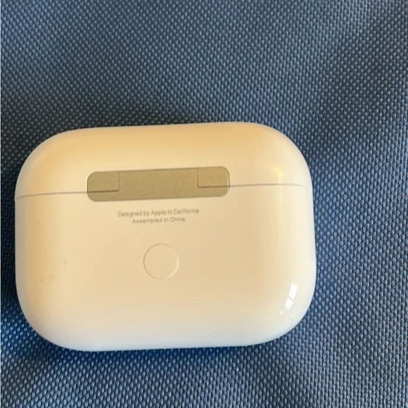 Apple AirPods Pro with noise cancellation. Charging case and ear tips. Includes charging cable. Sleek white design.